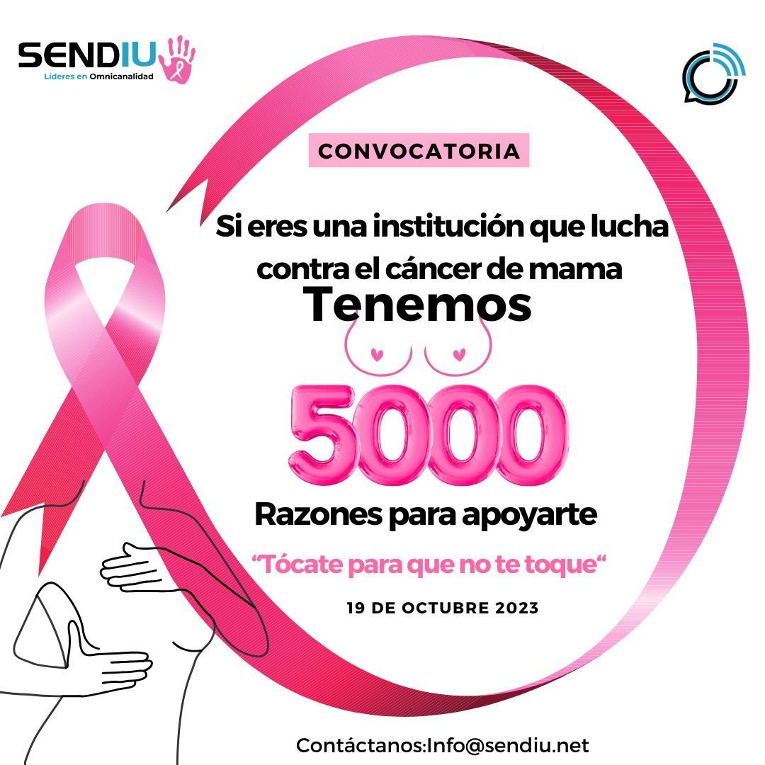 Santo Domingo, República Dominicana. Octubre del 2023. Sendiu anuncia la apertura a la convocatoria “Tócate para que no te toque” 2023, que estará disponible desde el 04 de octubre hasta el 19 de octubre 2023. Cómo cada año Sendiu realiza esta convocatoria para todas las instituciones que luchen contra el cáncer de mama, donando los servicios de su plataforma de SMSi para que puedan enviar un mensaje de apoyo a 5,000.00 mujeres que luchan para la prevención de esta enfermedad.