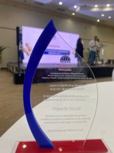Santo Domingo.- El Ministerio de Educación de la República Dominicana, a través del Departamento de Gestión de ASFL y Sociedad Civil del Viceministerio de Planificación y Desarrollo Educativo, otorgó un importante reconocimiento al Hogar Escuela Santo Domingo Savio (HESDS) por el Impacto Social de sus proyectos. La distinción tuvo lugar durante la Feria de Buenas Prácticas 2024, un evento que celebra las iniciativas sobresalientes de las Asociaciones Sin Fines de Lucro (ASFL).